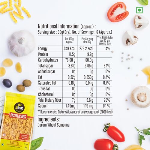 Disano pastalicious pasta crafted form the finest durum semolina into mouth-watering and nutrition meals which take just 12 minutes to prepare. With a low glycine index low cholesterol and high levels of fibre its no wonder that pasta is the foundation of the Mediterranean diet a healthful diet dominated by grains fruits vegetables and olive oil from deliciously simple feasts Disano pasta is the perfect choice.