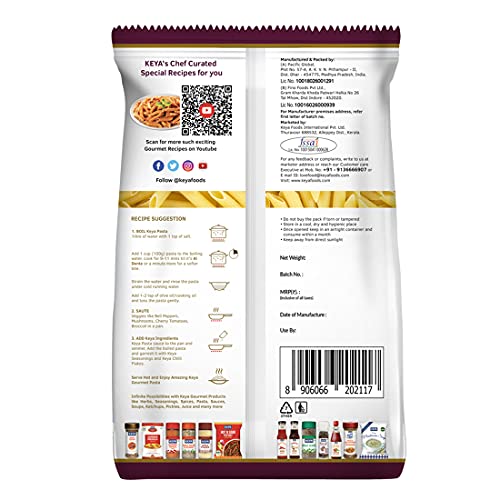 Enjoy an Authentic Italian Meal with Easy to Cook KEYA Penne Pasta. The Use of Wheat Semolina adds the healthy aspect to the pasta as it is a source of protein and fibre thereby making you feel satiated for a longer period. Its perfect shape and size allow any sauce or dressing to seep in well and help you serve the most delectable pasta.
