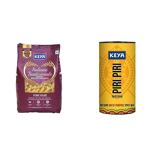 Keya Penne Pasta 1kg 100% Durum Wheat Pasta | Vegetarian | No MSG | Low in Calories | No Trans Fats | Healthy | Cooked in 10 MinutesInspired by Authentic Italian Culinary Keya Gourmet Pasta has been crafted from finest Durum Wheat Semolina to satisfy your cravings for authentic Italian PastaKeya Piri Piri | Exotic Spices Mix 80gm | Sprinkle It On Anything 100% Organic | Instant Seasoning Mix Exotic Spices | Perfect for Fries Pop Corn Pasta SeasoningAfrican bird's eye chili is a cultivar of Capsicum frutescens one of the sources of chili pepper that grows both wild and domesticated.