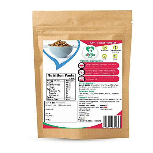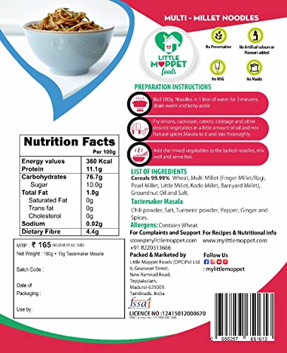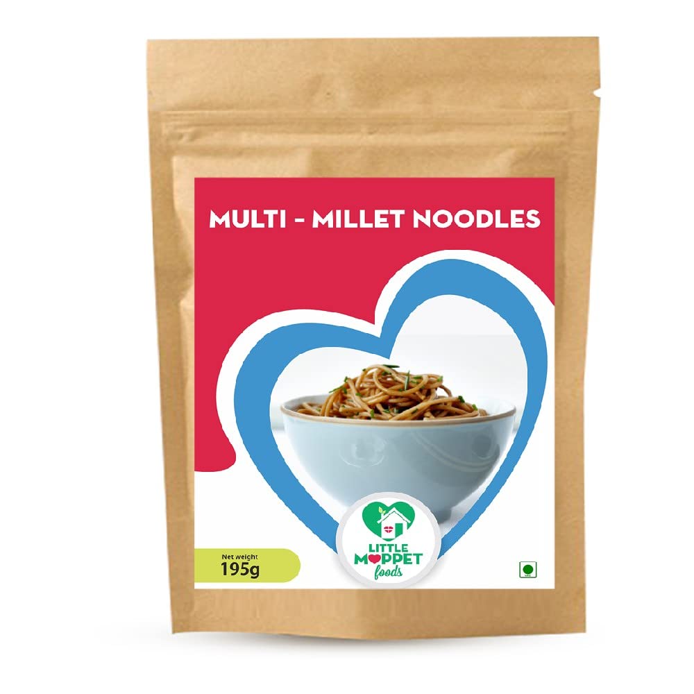 Little Moppet Foods Multimillet Noodles | No Maida, MSG, Preservative, Additives, Refined Oil | Sun Dried | Made with 5 Millet Supergrains |Vegetarian| Includes Tastemaker | Quantity - 195g