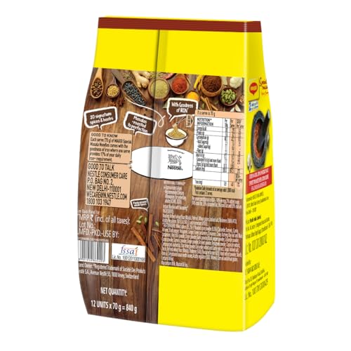 MAGGI 2-Minute Vegetarian Special Masala Instant Noodles Pack of 12 840 gram
