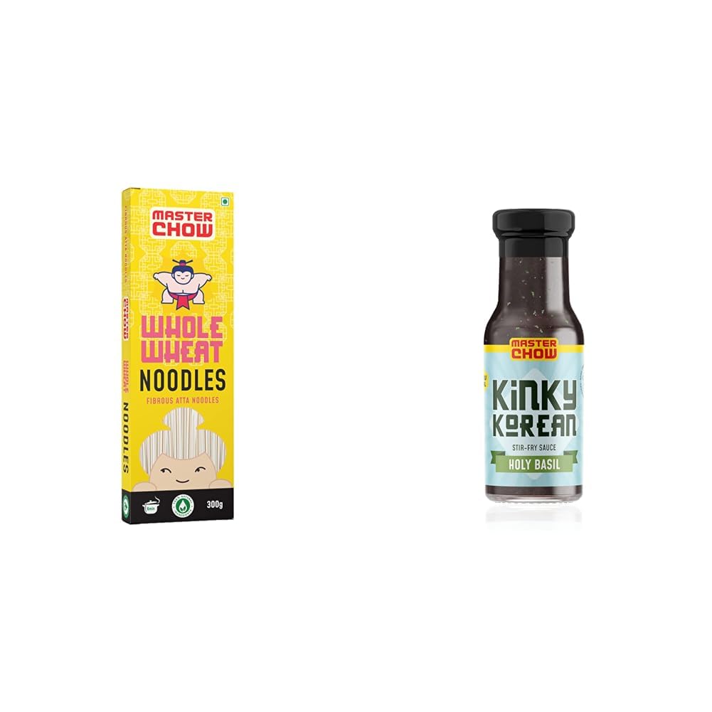 MasterChow Healthy Whole Wheat Noodles | No Preservatives | 100% Atta | Get Restaurant Style Taste in Just 10 Minutes | No Maida Not Fried | Serves 4-5 Meals - 300gmsWe pride ourselves on making fresh and flavorful sauces to give you a great Asian cooking experience at home. For years we have been consuming sauces that are not good enough and MasterChow is here to tell you that YOU deserve better Us Indians love an explosion of flavors and that's what we are trying to achieve with MasterChow! Its your time to be the Master MasterChowMasterChow Holy Basil Stir Fry Cooking Sauce - 220 gms | Non Spicy | Healthy Less than 40 Calories | Serves 4-5 Meals | Kinky Korean SauceWe pride ourselves on making fresh and flavorful sauces to give you a great Asian cooking experience at home. For years we have been consuming sauces that are not good enough and MasterChow is here to tell you that YOU deserve better Us Indians love an explosion of flavors and that's what we are trying to achieve with MasterChow! Its your time to be the Master MasterChow