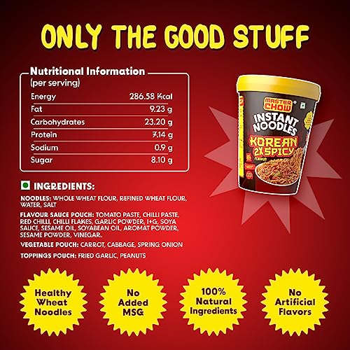 HomeGroceryCookingPasta & NoodlesMasterChow Instant Cup Noodles - 2X Spicy Korean Noodles | Delicious Saucy Authentic Korean Taste with Extra Veggies | 100g
