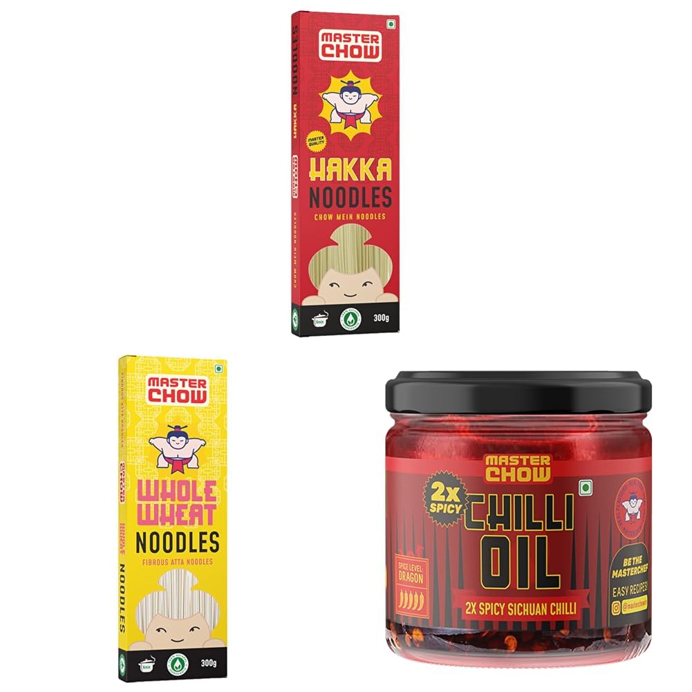 MasterChow Chinese Veg Hakka Noodles | No Preservatives | Get Restaurant Style Taste in Just 10 Minutes | Serves 4-5 Meals | 300gmsWe pride ourselves on making fresh and flavorful sauces to give you a great Asian cooking experience at home. For years we have been consuming sauces that are not good enough and MasterChow is here to tell you that YOU deserve better Us Indians love an explosion of flavors and that's what we are trying to achieve with MasterChow! Its your time to be the Master MasterChowMasterChow Healthy Whole Wheat Noodles | No Preservatives | 100% Atta | Get Restaurant Style Taste in Just 10 Minutes | No Maida Not Fried | Serves 4-5 Meals - 300gmsWe pride ourselves on making fresh and flavorful sauces to give you a great Asian cooking experience at home. For years we have been consuming sauces that are not good enough and MasterChow is here to tell you that YOU deserve better Us Indians love an explosion of flavors and that's what we are trying to achieve with MasterChow! Its your time to be the Master MasterChowMasterChow 2X Spicy Sichuan Chilli Oil (170 gms) New Launch | Extra Hot | Made with Sichuan Peppercorns Crunchy Garlic & Red Chillies | All Purpose Condiment | Eat With Momos Pizza NoodlesWe pride ourselves on making fresh and flavorful sauces to give you a great Asian cooking experience at home. For years we have been consuming sauces that are not good enough and MasterChow is here to tell you that YOU deserve better Us Indians love an explosion of flavors and that's what we are trying to achieve with MasterChow! Its your time to be the Master MasterChow