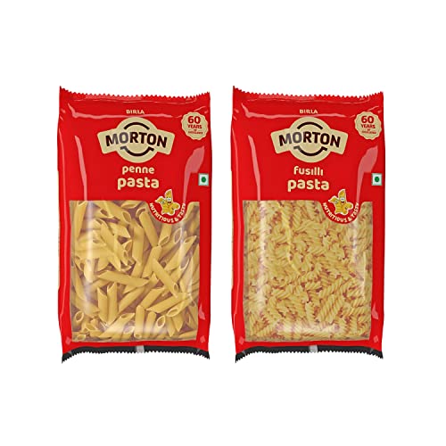 HomeGroceryCookingPasta & NoodlesMORTON Pasta Penne +Fusilli | Source of protein | 100% Vegetarian | Free from artificial colors & preservatives | Zero cholesterol - 450gm (Combo of 2)