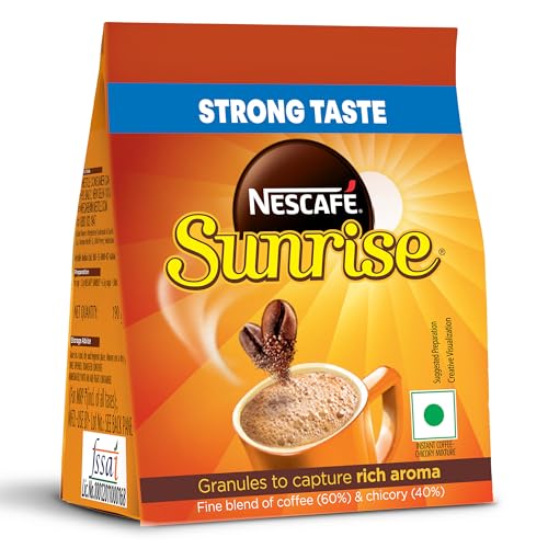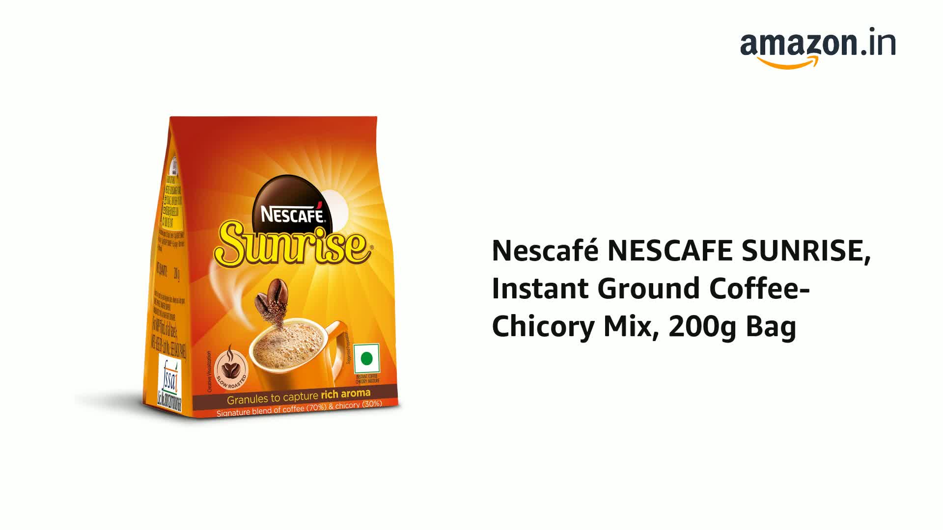 Start your day bright with the NEW STRONG TASTE of NESCAFE SUNRISE! It all begins with handpicked beans from the coffee farms of South India. These coffee beans are SLOW ROASTED to develop the perfect aroma which is retained using our world class expertise and captured in RICH AROMA GRANULES.