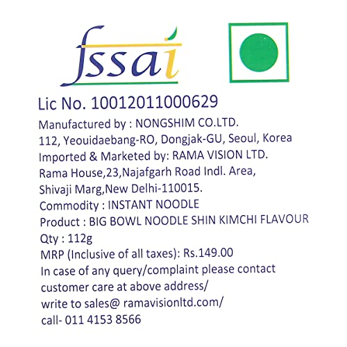 Nongshim Shin Kimchi Noodle Soup Big Bowl Instant Noodle 3.95 oz 112 g