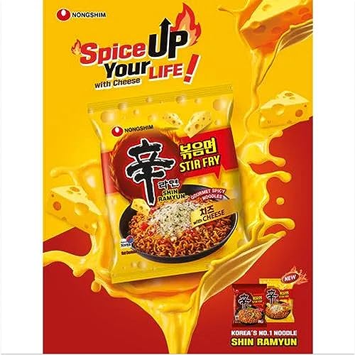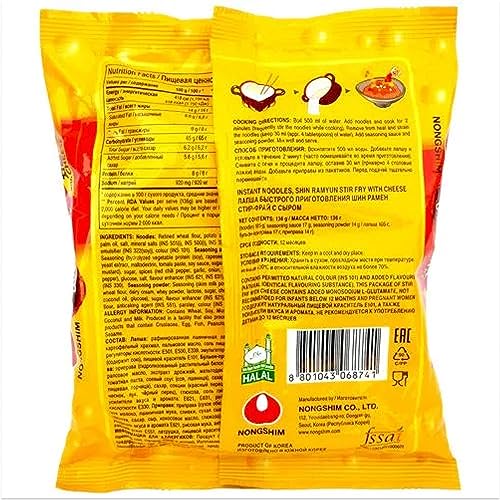 Nongshim's Shin Ramyun Stir Fry Gourmet Spicy Noodles with Cheese is a delicious and innovative twist on the classic Shin Ramyun instant noodle dish. This flavor combination brings together the beloved spicy kick of Shin Ramyun with the creamy indulgence of cheese creating a unique and satisfying culinary experience. The noodles themselves are made from high-quality wheat flour giving them a satisfying chewy texture when cooked. The Gourmet Spicy flavor seasoning brings the signature fiery heat of Shin Ramyun which is known for its bold and robust spiciness. This is balanced by the addition of cheese which adds a creamy and slightly tangy element to the dish. Preparing these noodles is easy and convenient. The stir-fry method ensures that the flavors are well-distributed throughout the noodles creating a harmonious blend of spiciness and cheesy richness. This variation also allows for customization as you can adjust the amount of cheese you add based on your personal preference. The Nongshim Shin Ramyun Stir Fry Gourmet Spicy Noodles with Cheese can be enjoyed as a quick snack or as a more substantial meal by adding additional ingredients like vegetables proteins or even a fried egg on top. This fusion of spicy and cheesy flavors adds an exciting dimension to the classic instant noodle experience making it a popular choice among those who enjoy bold and innovative culinary combinations.