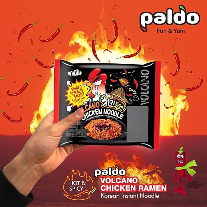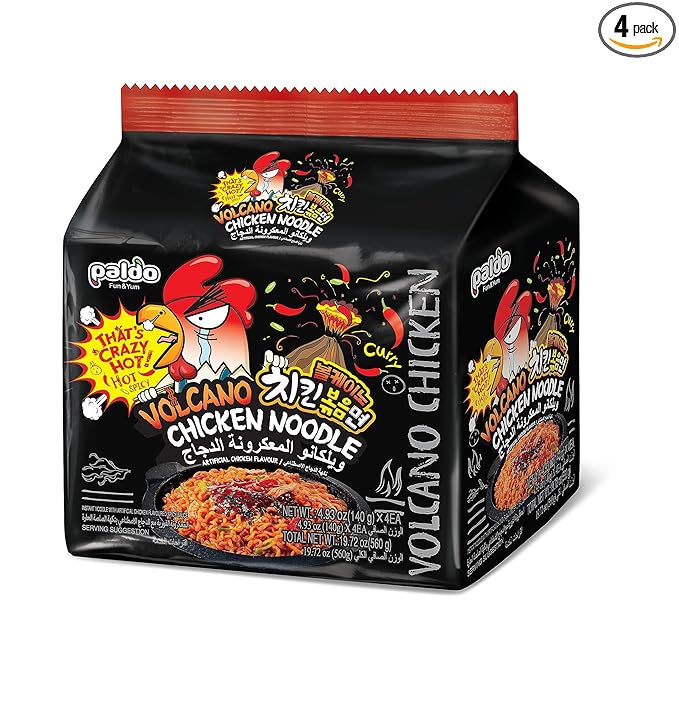 Paldo Volcano Chicken | Super Spicy Korean Noodles Pack Of 4, 600 Grams