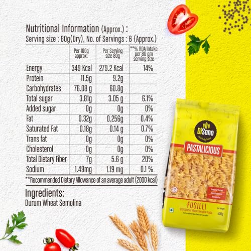 Healthy and its easy and fast to prepare good for kids and adults.Its a 5star product go for it without any doubt.Disano Pastalicious pasta, crafted from the finest durum semolina into mouth-watering and nutrition meals which take just 12 minutes to prepare. With a low glycine index low cholesterol and high levels of fibre, it's no wonder that pasta is the foundation of the Mediterranean diet, a healthful diet dominated by grains, fruits, vegetables and olive oil from deliciously simple feasts, Disano pasta is a perfect choice. Pls Go Passta Lover ??