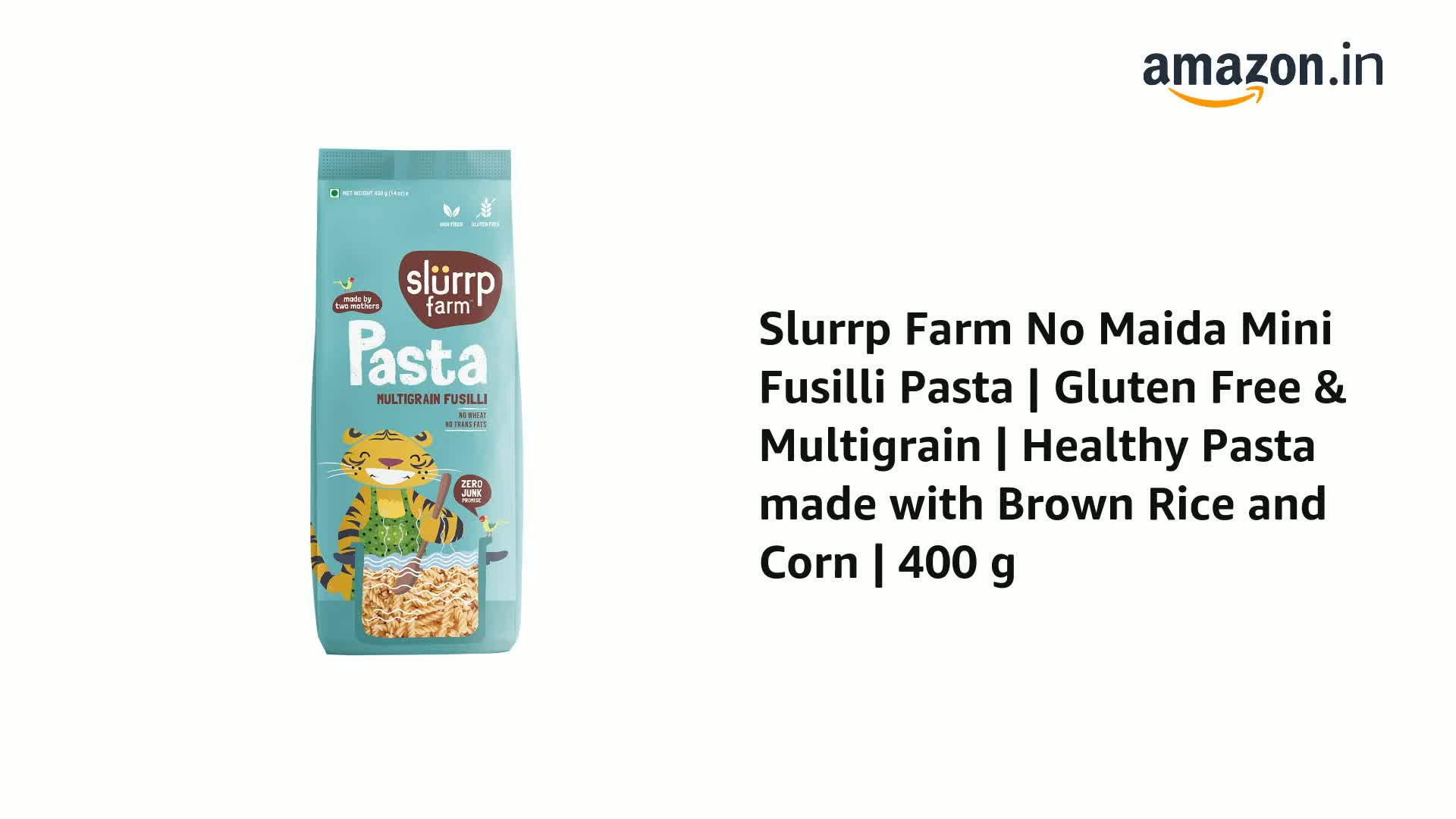 Slurrp Farm No Maida Multigrain Fusilli Pasta | No Transfat | Healthy Pasta made with Brown Rice and Corn | 400 g