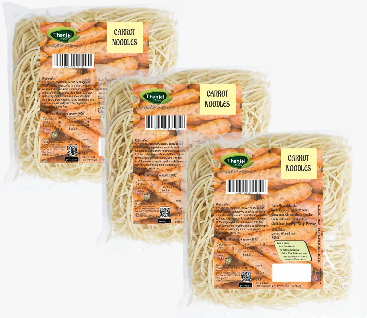 Thanjai Natural Carrot Noodles 180 Grams X 3 (540 Grams) of Homemade Natural Noodles (No Preservatives No Chemicals No Artificial Extract)