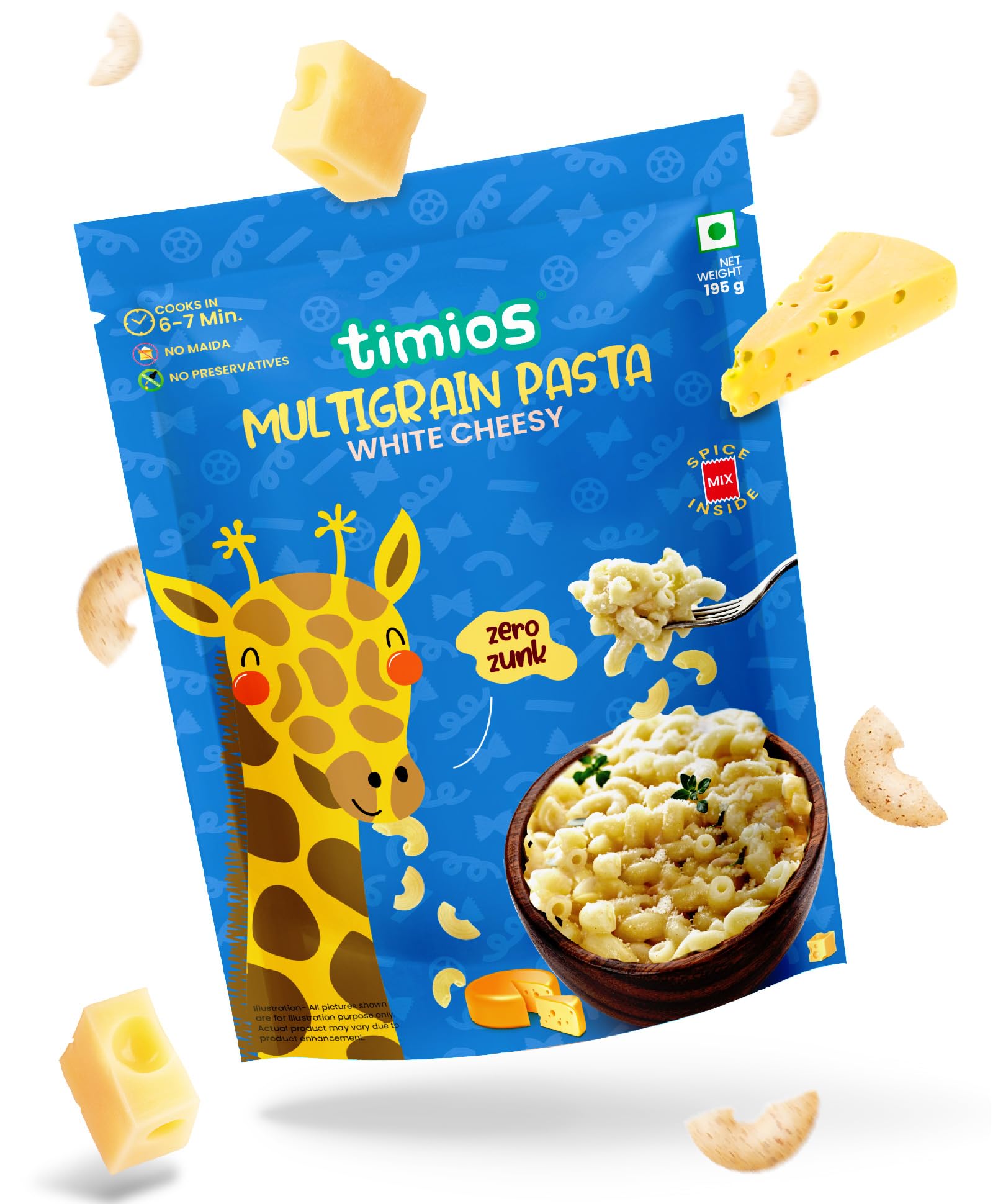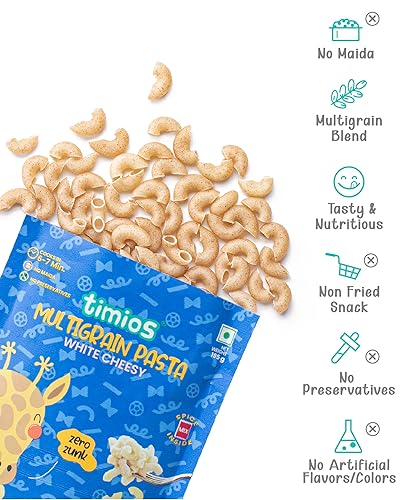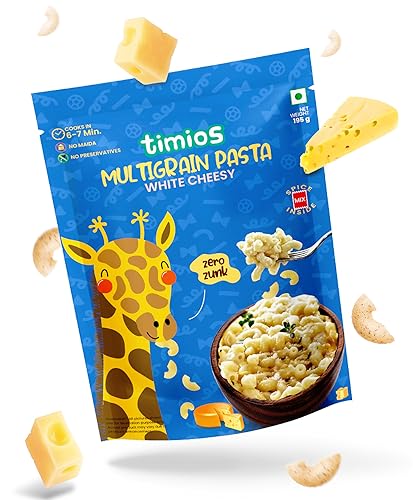 The Pasta is made from multigrains and contains high fiber. It contains no trans fat and 0 junk and no wheat. Free yourself from unhealthy food. Timios No-Maida White Cheesy Instant Pasta Vegan Gluten Free and Multigrain Healthy Pasta made with Brown Rice and Corn.