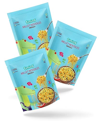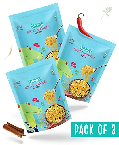HomeGroceryCookingPasta & NoodlesTimios No-Maida Millet Masala Flavored Instant Noodles | Not Fried | No MSG | No Preservatives | No Artificial Colors & Flavors | No Trans Fat & Cholesterol | Vegetarian | Pack of 3 | 190g Each