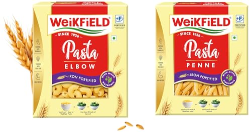 HomeGroceryCookingPasta & NoodlesWeikfield High Protein Penne + Elbow Pasta Healthy Pasta Made with 100% Durum Wheat Semolina - No Maida Rich in Protein & Fibre 400g - Pack of 2