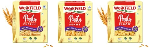 Weikfield High Protein Penne + Fusilli + Elbow Pasta Made with 100% Durum Wheat Semolina No Maida - 400g - Pack of 3