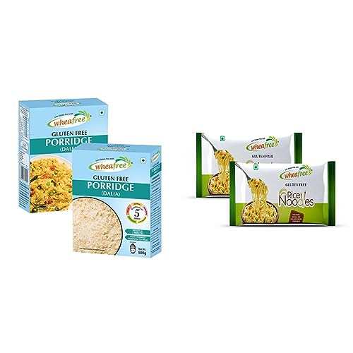 Wheafree Gluten Free Porridge/Dalia (Pack of 2-500gm each) | Now with the Goodness of QuinoaWheafree Porridge (Dalia) is your healthy replacement to Wheat Dalia and is made from five broken grains- Quinoa Sorghum Maize Brown Rice and White Rice. As our Porridge (Dalia) is neutral flavour you can make a savoury dish and spice it with vegetables and your favourite spices OR make a sweet dish with milk and nuts. Wheafree Porridge (Dalia) is high in dietary fibres and proteins which helps to improve your digestive system lowers the risk of high blood pressure cardiac diseases and gives you the energy to kickstart your day. HOW TO MAKE Put 50g of Dalia in a cooker and put 1/2 tablespoon of Desi Ghee/ Butter/ Oil and saute on low flame for 1/2 minute (30 seconds). Put 1.5 cups (250ml) of water and steam for 2-3 minutes. SAVOURY TASTE Saute the finely cut vegetables (Beans Cauliflower Carrot etc.) in a fry pan. Add salt and pepper according to your taste. Add steamed Dalia in the pan and stir-fry for a few minutes. Garnish with coriander. SWEET TASTE Add steamed Dalia to milk add pinch of cardamom powder and sugar to taste and boil for 2 minutes. Serve it in a bowl.* Get 2 Packs of 500gm eachWheafree Rice Noodles - Pack of 2 (200g each)The product in display is lactose and soy exempt and is made with rice salt potato starch corn starch sago xanthan gum edible vegetable oil. It has a shelf life of 6 months. It comes in a food grade laminated pouch. Keep away from sunlight in a cool dry place. Cooking Directions Quantity- 200gms Serves- 2 Cooking Time- 10 mins - Boil a pot full of water. - Carefully separate the noodle cake into three parts. - Once the water is boiling hot add the noodle cakes into the pot and also add one tbsp of oil to avoid them from sticking together. Now cover the pot with a lid. - Boil the noodles for about 5-7 minutes on high flame and do stir them in between. - Now take off the lid and check your noodles. When you see the noodles floating above the water and on touch they feel slightly undercooked take it off the flame. - Drain the water and rinse the noodles under cold water to remove the starch. Once you are able to see the noodle strands separately stop rinsing it. - Now put the noodles back into the empty pot/ separate bowl and toss them with 1tbsp of oil to prevent clumping. - Heat 1tbsp of oil in a separate pan on medium heat. - Till the time the pan is getting heated up take half a cup of water (175ml) and add to it the Wheafree masala mix that is provided to you in the pack. Now stir the powder thoroughly so that there are no lumps. - Once the pan is heated add the boiled noodles to it followed by the water containing the masala dissolved in it. If you prefer your noodles soupy you can add slightly more water to the pan. - Stir the noodles with a light hand and continue cook it for 2-3 minutes on a medium flame. - Add salt and pepper to taste. - If you like you can add salted/ fresh butter to enhance the flavours. - According to your taste preference you can add to your noodles fresh/ lightly sautéed vegetables and any gluten free sauce that you have.