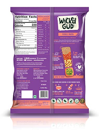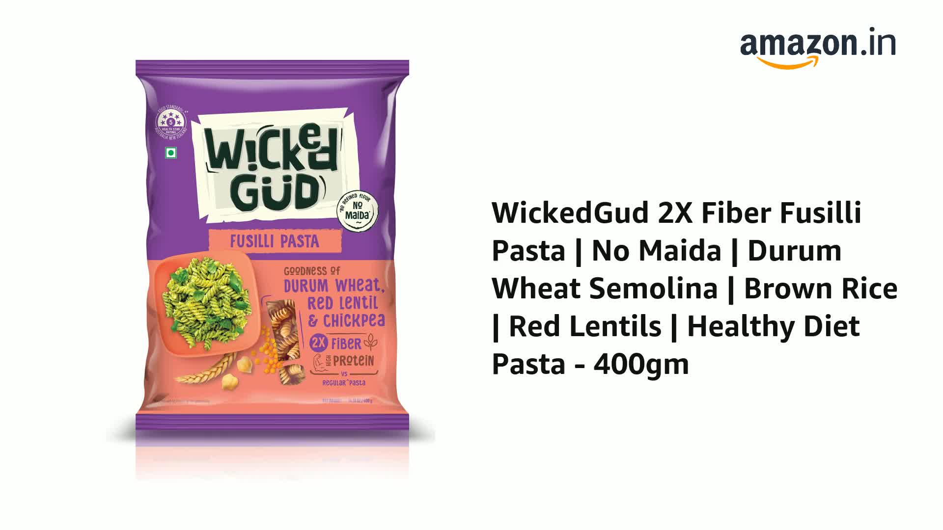 WickedGud 2X Fiber Fusilli Pasta | No Maida | Durum Wheat Semolina | Brown Rice | Red Lentils | Healthy Diet Pasta - 400gm
