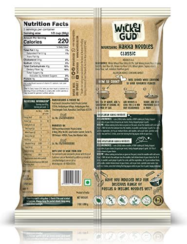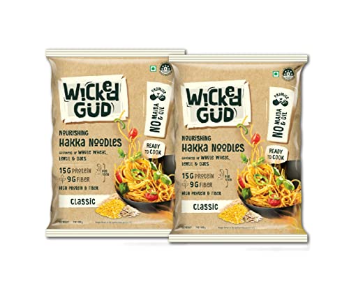 WickedGud Hakka Noodles (200gm x 2) No Maida | No Oil | No MSG | High Protein | High Fibre | Cholesterol Free
