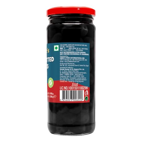 Abbie's Black Pitted Olive 450g Pack Of 1, Product of Spain