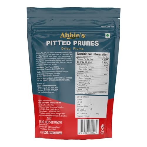 HomeGroceryCookingSalad DressingsAbbie's Pitted Prunes || Dried Plums 200 grams Resealable Zipper Pack || Enjoy as a snacks or in your recipes || Source of Fiber || Natural Potassium || No Added Sugar || No Added Flavor or Colour