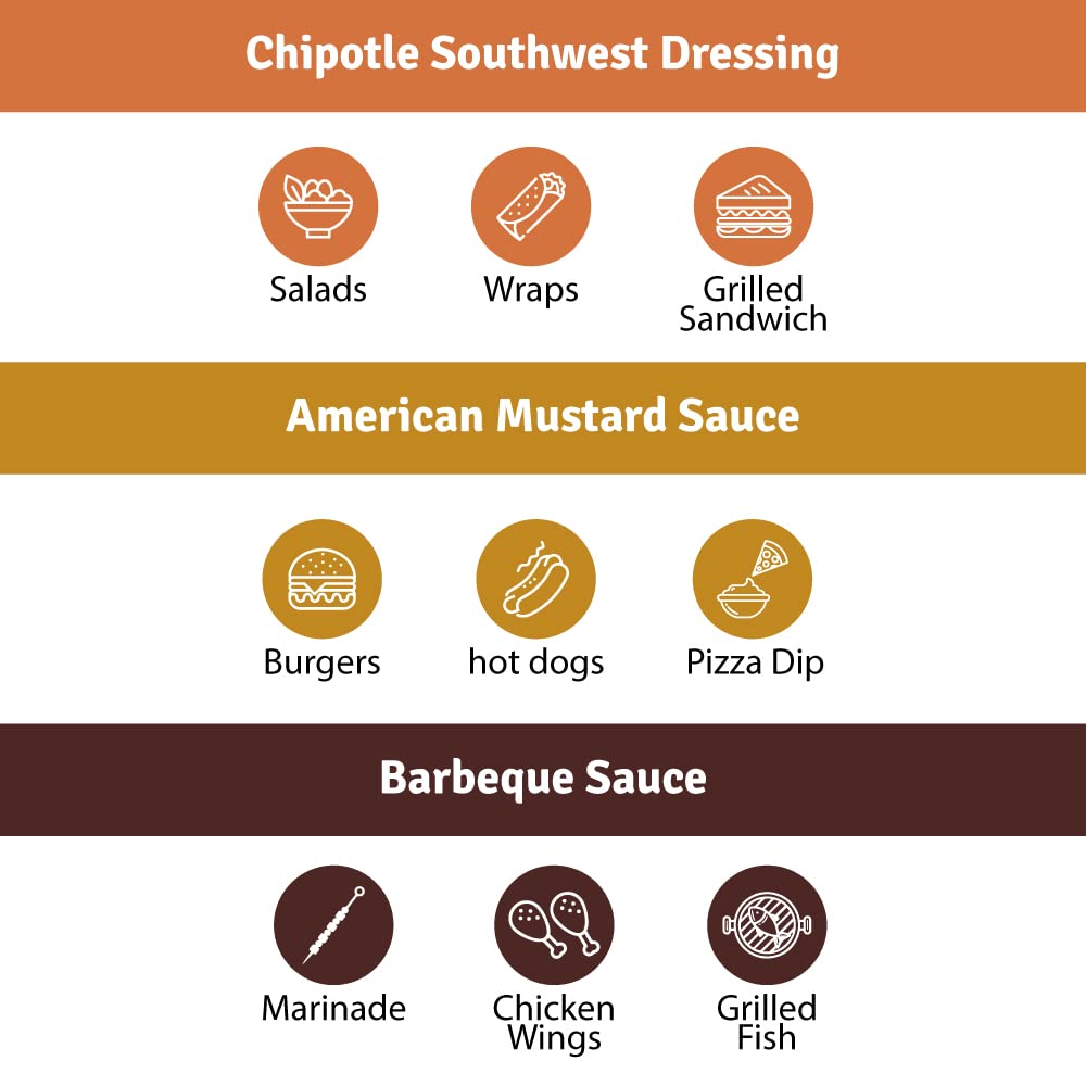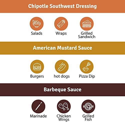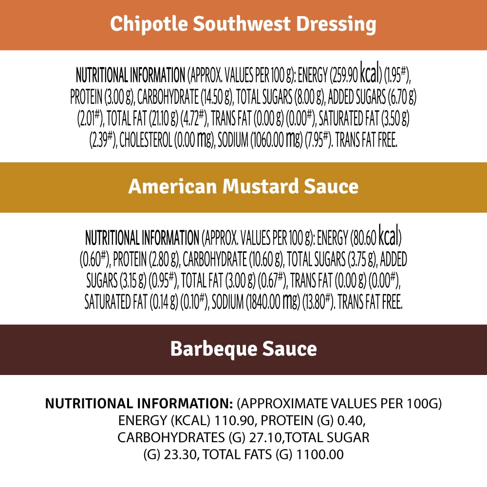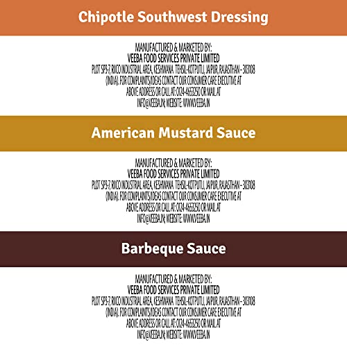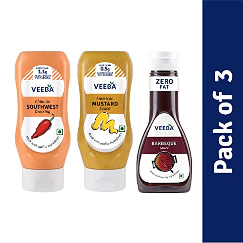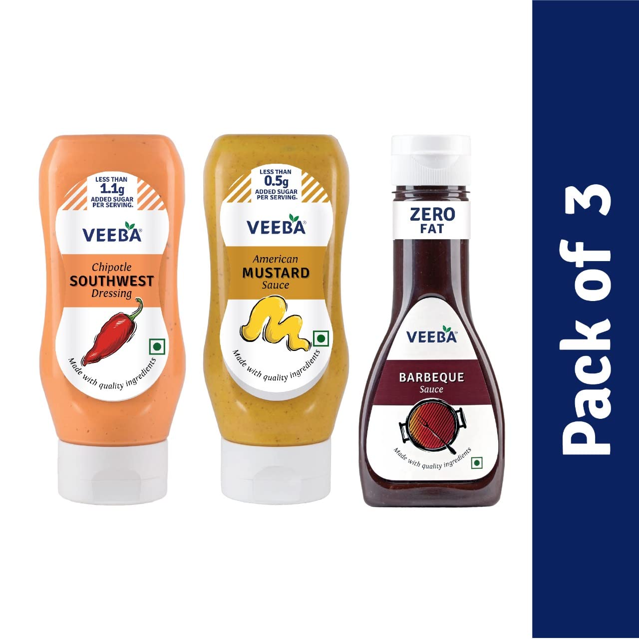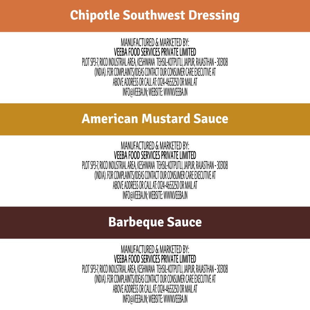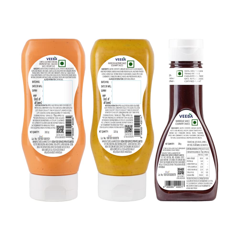Veeba Chipotle Southwest Dressing, 300g with American Mustard Sauce, 310g and Barbeque Sauce, 330g