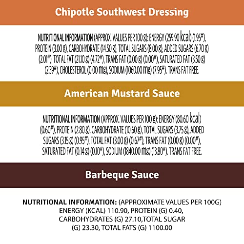 • Chipotle southwest dressing 78 percent fat free American mustard sauce 96 percent fat free barbeque sauce 99 percent fat free