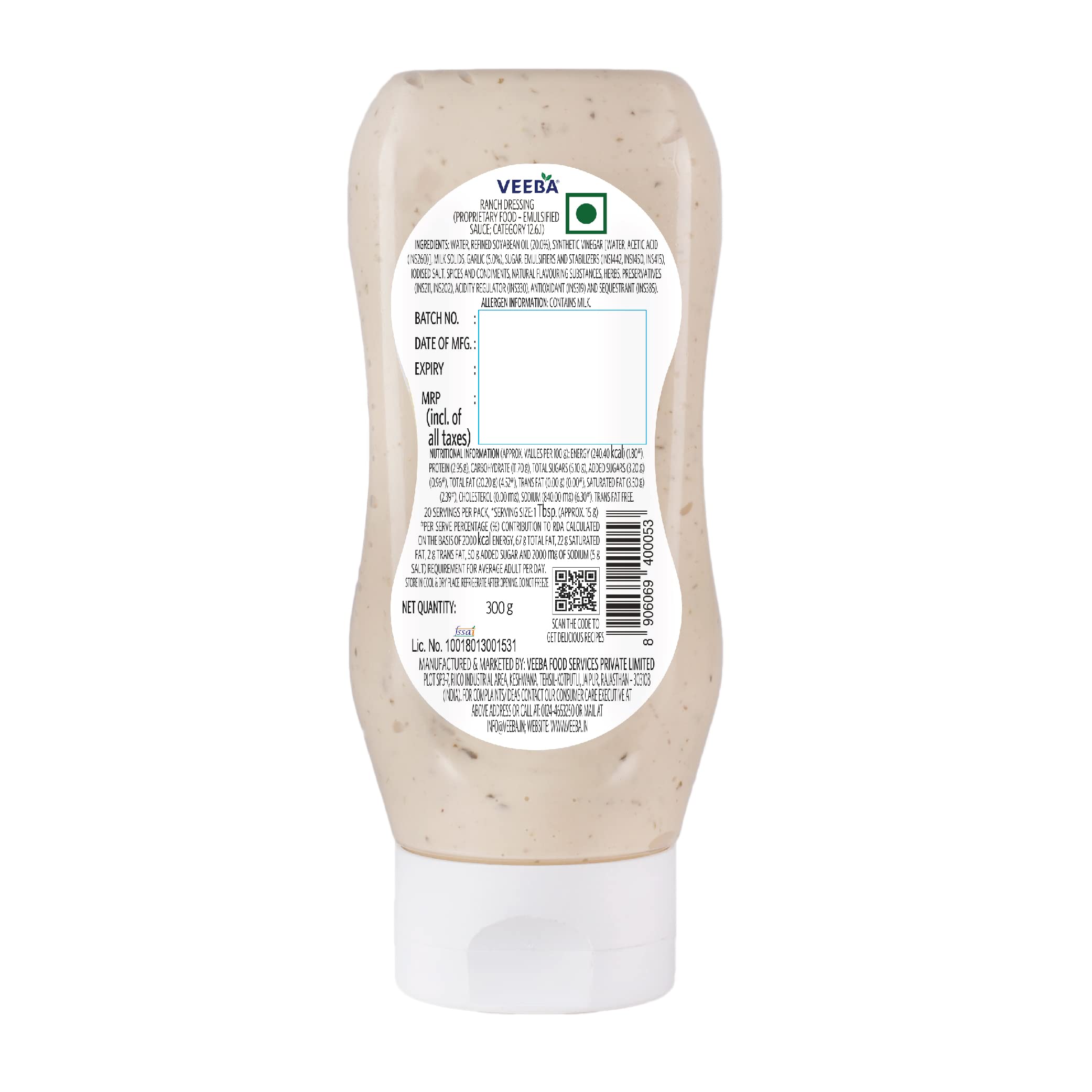 • Veeba Ranch Dressing is an authentic Mexican dressing. It has the goodness of yoghurt balanced with garlic and herbs
