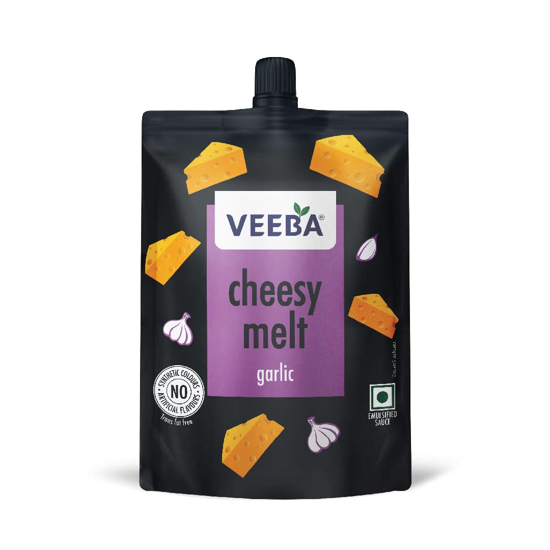 Veeba Cheesy Melt Garlic: Goodness of Cheese combined with pungent notes of garlic! With its rich and smooth texture and aromatic notes this cheesy delight adds depth and complexity to everything with its unique flavor profile.
