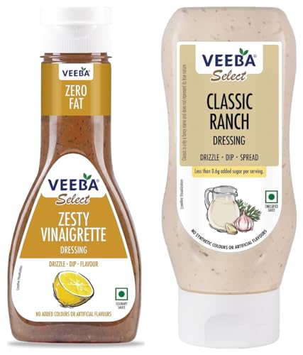 Veeba Ranch Dressing 300gAll our sauces and dressings have exceptionally low fat content at the same time retaining that perfect balance of taste and flavour. Not just that to ensure unmatched quality all Veeba sauces are manufactured in an iso 22000 certified plant. Customer convenience is the top priority here at Veeba thus all Veeba sauces and dressings come in specially designed ergonomical bottles with an easy to apply dispensing system. For the first time in India such a wide range of tasty and healthy sauces and dressings has been introduced. Using our considerable experience in the food processing industry we have tried to translate our understanding of the changing tastes of the young Indian households into finest products possible. You can now make your favourite sandwich salad or snack in the comfort of your home.Veeba Vinaigrette Salad Sauce 320gAll our sauces and dressings have exceptionally low fat content at the same time retaining that perfect balance of taste and flavour. Not just that to ensure unmatched quality all Veeba sauces are manufactured in an iso 22000 certified plant. Customer convenience is the top priority here at Veeba thus all Veeba sauces and dressings come in specially designed ergonomical bottles with an easy to apply dispensing system. For the first time in India such a wide range of tasty and healthy sauces and dressings has been introduced. Using our considerable experience in the food processing industry we have tried to translate our understanding of the changing tastes of the young Indian households into finest products possible. You can now make your favourite sandwich salad or snack in the comfort of your home.