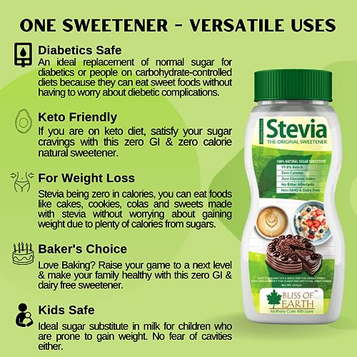Bliss of Earth 99.8% REB-A Purity Stevia Powder for Diabetic Natural & Sugarfree Zero Calorie Keto Sweetener 3X200GM