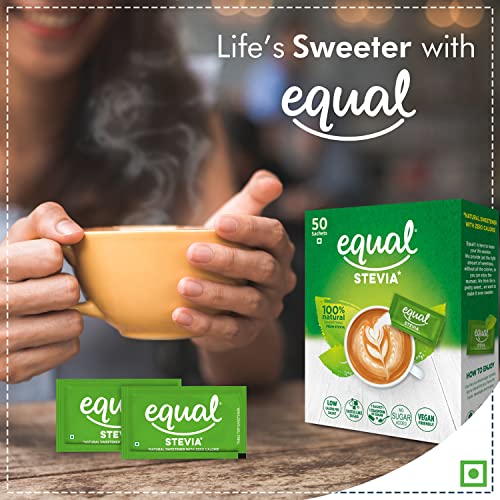 Equal Stevia Natural Sweetener, Sugar Free, 50 Sachet (Pack of 1)
