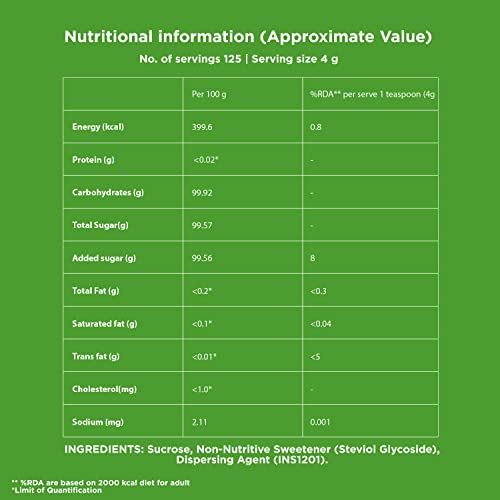 Not satisfied by the claims, this is not even comparable to Zydus Sugarlite. Although they claim 1 spoon equal double the sugar but it is not. Totally unworthy.