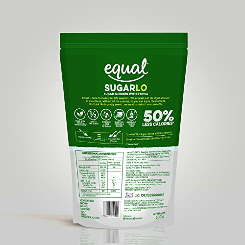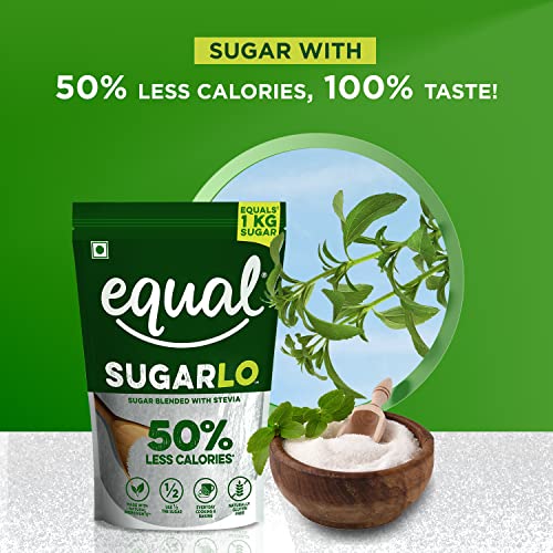 Equal SugarLo | Sugar Blended With Stevia | 50% Less Calories Sugar |1Kg (500g Pack of 2)