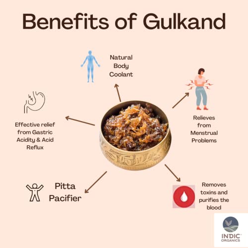 I have Purchased All of the Indic Organics products. All the products are Too good. The quality of the products is Premium and Taste is Very good when compared to other brands products. Specially Ghee And Gulkand is Too good and My whole family liked it. After using Indic Organics Gulkand products the results can be felt as it helps to maintain body cool and reduces Pitta.Keep going on Indic OrganicsThank you Silkrute for providing Best products of Indic Organics