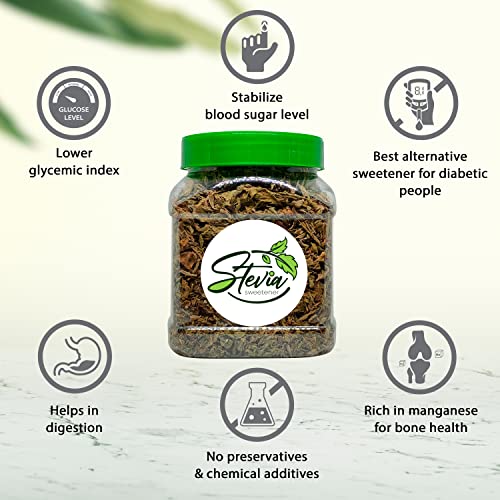 My village brings you Stevia Dry Leaves that act as a good alternative to sugar. Stevia dry leaves are a natural sweetener that is very low in calories. It is the leaf of the Stevia plant and is used to provide a sweet taste in food and beverages. Stevia dry leaves contain many vital minerals vitamins that are absent in artificial sweeteners. It is a perfect way to remain fit and healthy without any compromise with taste and health. Place it in a dry and cool room also avoid direct sunlight. The leaves contain a number of sweet-tasting chemicals known as steviol glycosides which can be used fresh or dried to sweeten beverages or desserts or can be commercially processed into powdered noncaloric. (i.e. they do not affect blood glucose levels). it is the healthiest alternative for sugar.