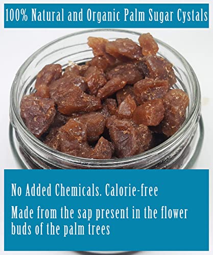 Palm sugar is a natural sweetener that is made from the sap present in the flower buds of the palm trees. It is known as natural sugar because it involves minimum processing and no chemicals are used. We heated the sap from the tree to wick away the moisture content until a thick syrup is obtained and this sweet nectar is then further reduced to crystals. The sugar has a mild caramel flavor and in its liquid form resembles honey whereas in the granular state it is not much different in taste as compared to white sugar. It is used in making curries sauces and desserts. Palm sugar is an unrefined sugar it is known to be rich in vitamins and minerals. As a result it has become increasingly popular as a substitute for white and brown sugar. Research studies have found that it contains minerals like potassium phosphorus zinc iron manganese and copper; small amounts of phytonutrients such as polyphenols flavonoids and anthocyanidin; and antioxidants. It is rich in B vitamins especially inositol (Vit8) which is needed for the formation of healthy cells as well as thiamine riboflavin folic acid and choline.
