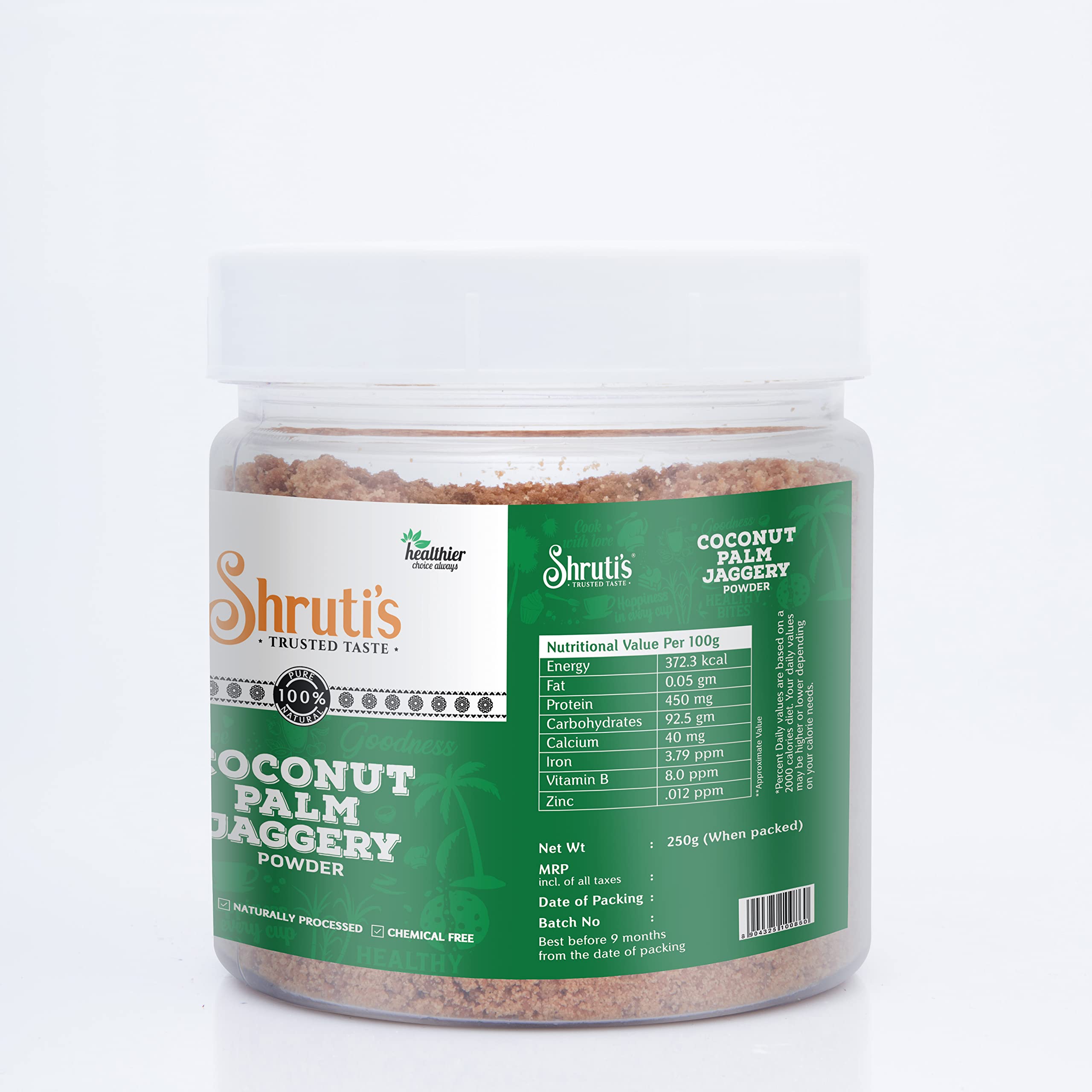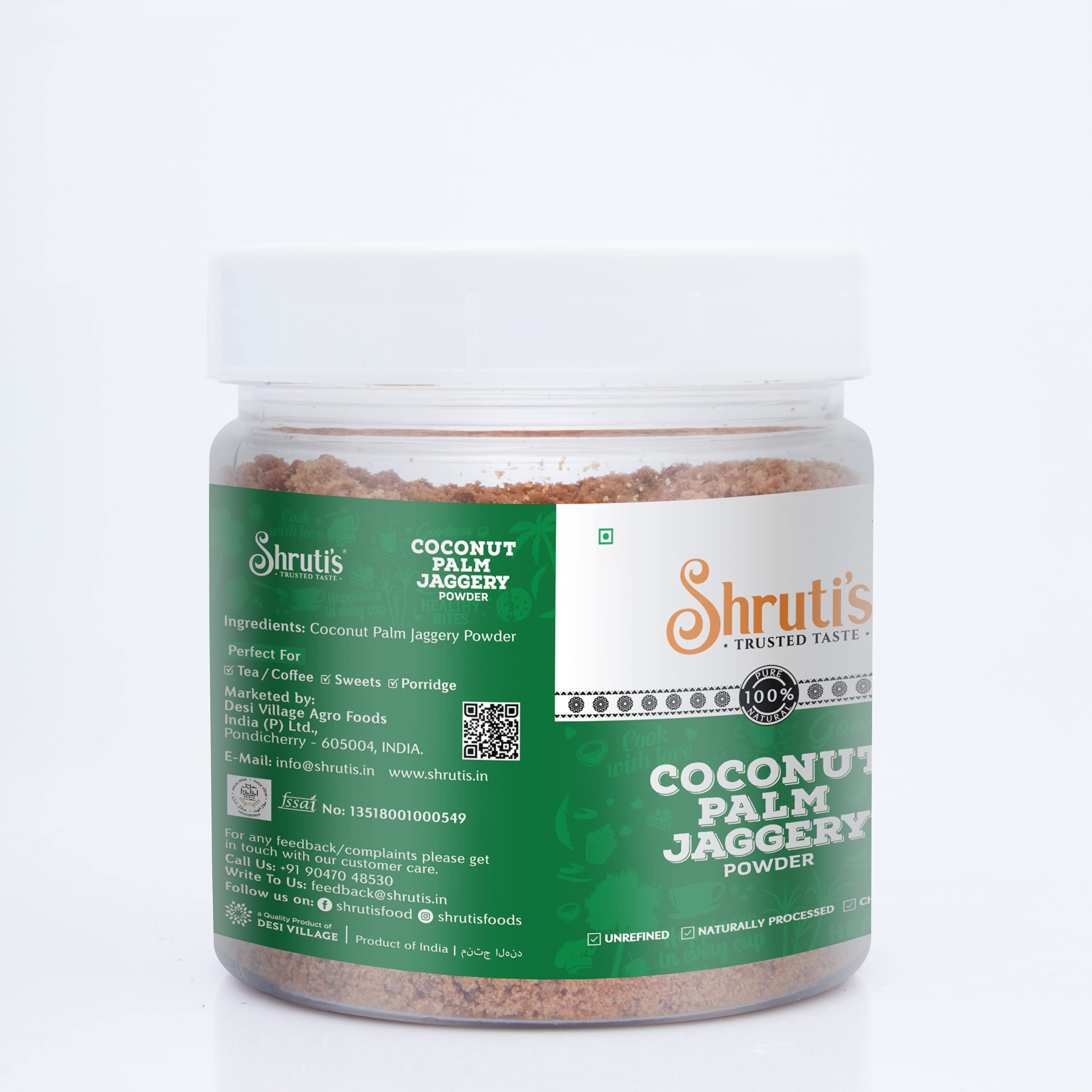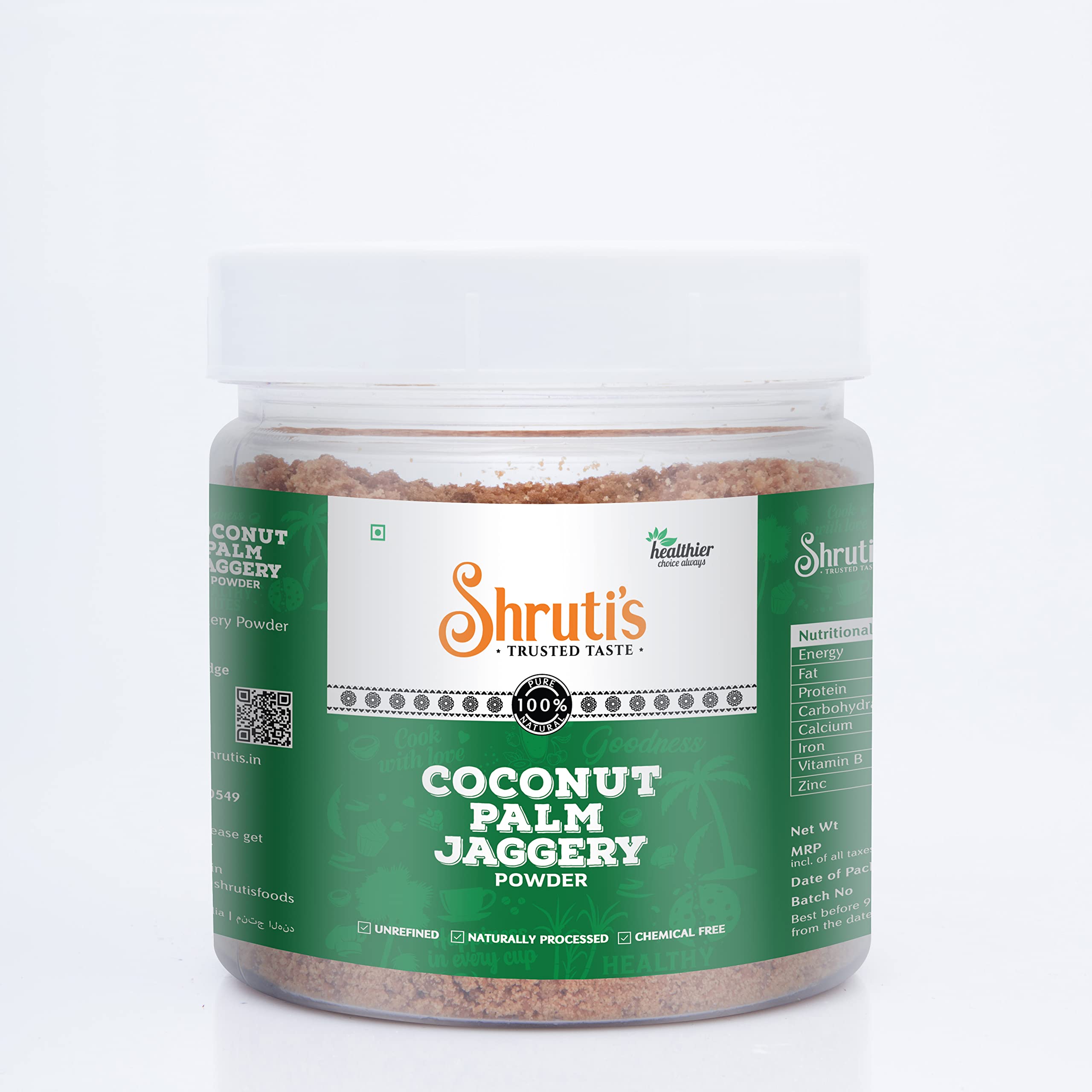 Coconut jaggery powder comes from a natural source the sap of the coconut palm. To harvest coconut palm sap farmers cut into the flower-bud stem of the tree to allow the nectar to flow out. To make Coconut jaggery powder farmers mix the sap with water and boil it down to syrup. It has low sucrose content high minerals and antioxidants as compared to refined sugar. Another factor that gives coconut jaggery powder an edge over the other sweeteners is that it is not refined or chemically altered and contains no artificial ingredients or synthetic substances.KEY BENEFITS:Good Source of Vitamin CShort-Chain Fatty AcidsHas Inulin Which Helps In Good Gut BacteriaLow Sucrose ContentRich In Antioxidants