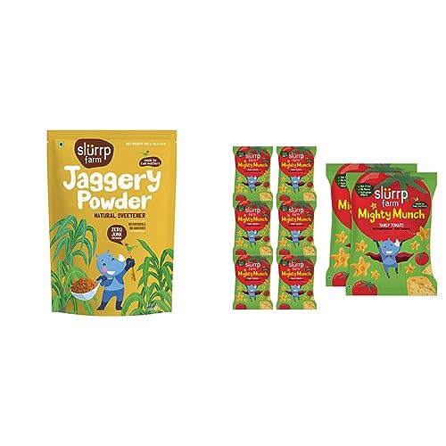 Slurrp Farm Natural Jaggery Powder 300 GSlurrp Farm is founded by two mothers for their children and yours. Our mission is to provide tasty and all natural alternatives to the junk food that surrounds us today. This means no preservatives no artificial flavours and no artificial colours. We are passionate about raising awareness of healthy eating for children by giving parents convenient food options which are as good as what we would make at home.Slurrp Farm Healthy Snacks for Kids | Mighty Puff Tangy Tomato| Not Fried No Maida | Snack for School Tiffin and Travel-Friendly | 8X 20g EachCrunchy-munchy and loaded with nutritional benefits the slurrp farm mighty puff and mighty munch are perfect anytime snacking options for all ages. Zingy-zesty munchies made with real tomato and mango powder combined with ragi and jowar very very yummy in your tummy. Guilt free happiness - they are designed for school going kids to pop into their bags and their parents too. About the brand: at slurrp farm we are passionate about raising awareness of healthy eating for children and giving busy parents like us the convenience needed in terms of being able to find food options which are as good as what we would make at home. Our recipes always start at home from amongst our friends and families. After many home trials we perfect them in consultation with nutritionists and pediatricians.
