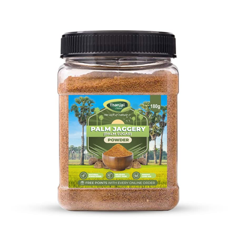 Thanjai Natural Palm Jaggery Powder 180g Jar 100% Natural Traditional Method Made Pure Directly from Farmer/No chemical Added