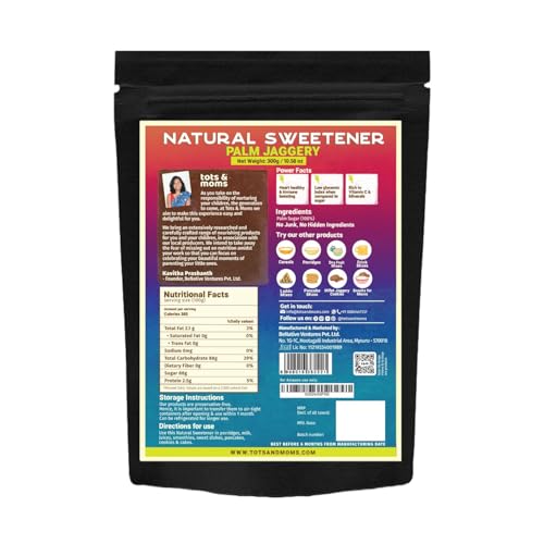 • BEYOND SWEETNESS: Tots & Moms Palm Jaggery goes beyond just sweetening food. Its unique subtly sweet and caramel-like flavor adds a delightful touch to savory dishes like dals and vegetable curries. You can even use it to create delectable homemade syrups
