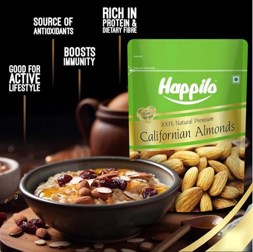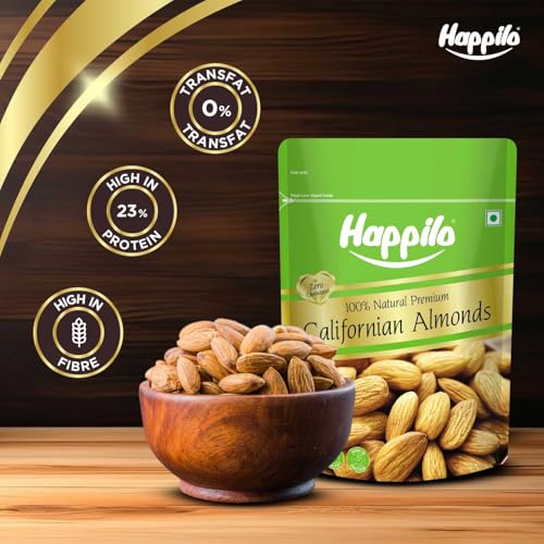 Happilo 100% Natural Premium California Almonds 500g| Premium Badam Giri | High in Fiber | Real Nuts | Whole Natural Badam | Rich in Protein | Magnesium | Phosphorus | Dietary Fibre | Nuts & Dry Fruits |Gluten Free & Zero Cholesterol