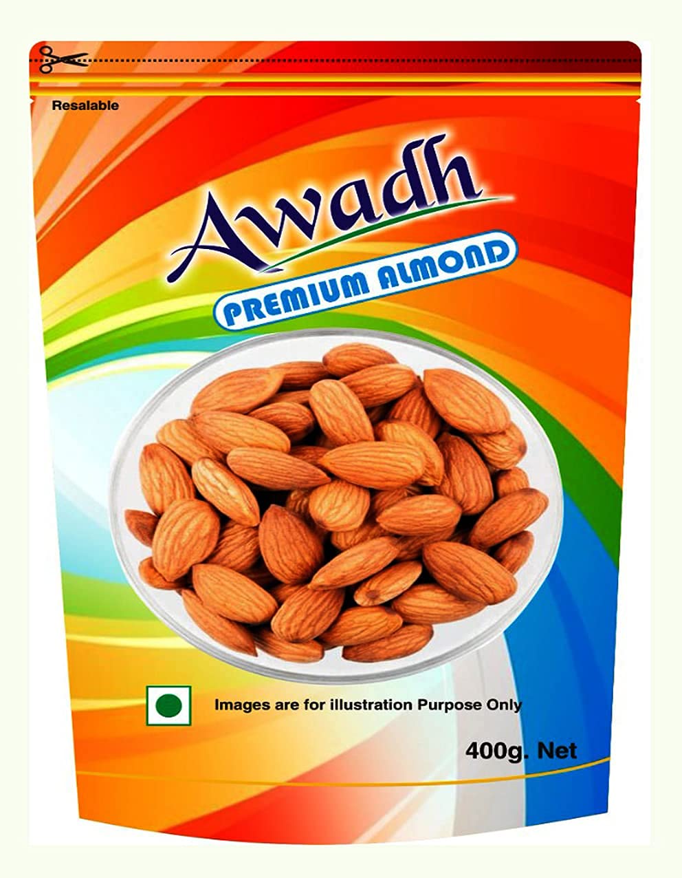 AWADH- PREMIUMNATURAL ALMOND 400G PLAIN BADAMSABOOT BADAMDRY FRUIT ALMONDSMEVA