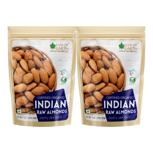 Bliss of Earth 2x500gm Organic Almonds Badam Dry fruits Crunchy & Tasty High in fiber, Immunity Booster Your Daily Diet Super Snack