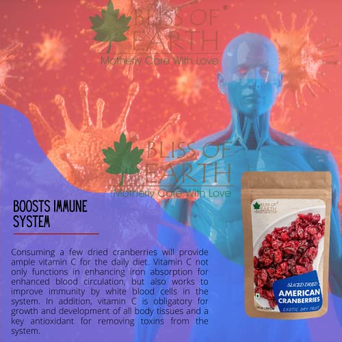 Bliss of earth Certified Organic Almonds are highly nutritious and rich in healthy fats antioxidants vitamins and minerals. Like any other nuts almonds are bursting with nutrition. In fact almonds may be most nutrient-rich tree nut available today. adding almonds to your diet is a smart and tasty move that can pay dividends for life.Bliss of Earth dried Cranberries are handpicked from the united states of America. These berries are natural and delightful dried berries that are an excellent source of antioxidants. Also rich in vitamin K & C and fibre cranberries. offer a daily dose of nutrients. Unlike many other dry fruits these berries are extremely versatile in their use dried cranberries are a culinary ingredient that will help you produce a variety of great dishes.