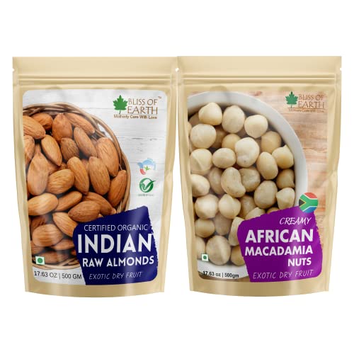 Bliss of Earth Certified Organic Indian 500gm Almonds, Badam + 500gm African Macadamia Nuts Crunchy & tasty healthy dry fruits