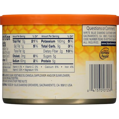 Indulge in the perfect blend of sweet and savoury with these honey roasted almonds. Each premium almond is carefully roasted and coated with real honey for an irresistibly delicious snacking experience. The convenient 150g canister keeps these crunchy treats fresh and ready to enjoy anytime. These flavourful almonds make an excellent snack for your desk an energy boost during outdoor activities or a delightful addition to your party spread. The natural goodness of almonds combined with a touch of honey creates a satisfying crunch that's hard to resist. Perfect for sharing or enjoying solo these honey roasted almonds deliver a consistent taste and quality in every bite. Keep the resealable canister handy in your pantry for whenever you need a flavourful snack that satisfies both sweet and nutty cravings.