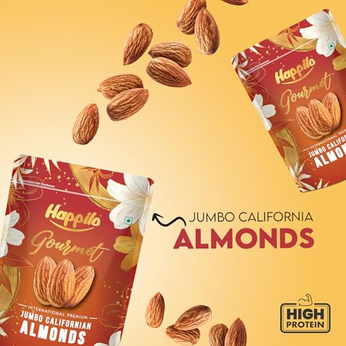 Discover the exquisite world of almonds with Happilo Gourmet Jumbo Californian Almonds available in this convenient 200g pack. These almonds are celebrated for their premium quality and exceptional flavor sourced from the renowned almond orchards of California. Almonds are not just a delicious snack; they are a nutritional powerhouse offering a rich blend of healthy fats protein dietary fiber vitamins and essential minerals. Whether you're enjoying them as a satisfying snack or using them to enhance your culinary creations the creamy texture and nutty flavor of these premium Californian almonds make them a versatile kitchen companion. The jumbo size ensures a hearty and fulfilling snacking experience and the resealable packaging guarantees freshness for your convenience. Whether you're seeking a wholesome snack or a flavorful addition to your recipes Happilo Gourmet Jumbo Californian Almonds promise a delightful and versatile experience for your taste buds and well-being.