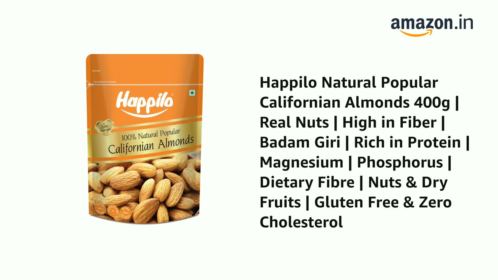 Indulge in the unparalleled taste and nutritional goodness of Happilo Natural Popular Californian Almonds. Sourced from the sunny orchards of California these almonds are handpicked to ensure you get the finest quality. They are a nutrient-packed superfood brimming with heart-healthy monounsaturated fats fiber and vitamin E. With our resealable packaging freshness is guaranteed so you can savor their crispness over time. Whether you're snacking on them or incorporating them into your favorite dishes these almonds offer versatility and gourmet quality. Elevate your snacking experience with Happilo Natural Californian Almonds and savor the delectable flavor and wholesome nutrition they provide.