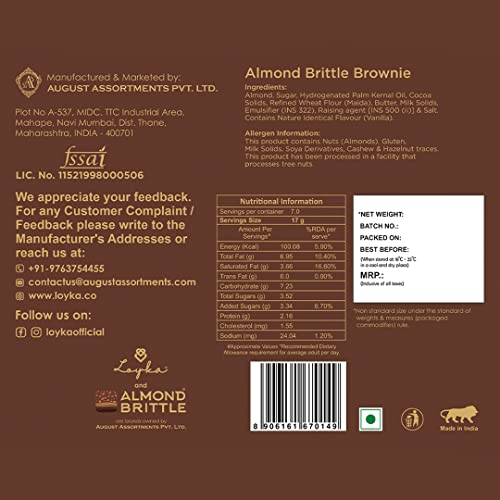Loyka Almond Brittle Brownie Choco Box - 7 pcs | Premium Chocolate Gift Hamper | Choco & Nut Dryfruit Delicacy | Roasted California Almonds (45%) Dark Choco & Crunchy Brownie | Any-time snack